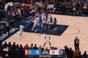 年轻五岁就扣了!威少杀入篮下顶着两人抢到进攻板 单手补进篮筐
