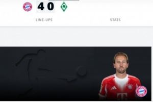 梅开二度!官方:凯恩当选拜仁4-0不莱梅的全场最佳球员