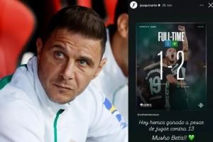 主裁判伊奥苏-加莱奇的执法表现引发许多人不满,其中就包括华金,这位贝蒂斯名宿在Instagram写道:“今天我们尽管是面对13个人比赛,但还是赢了。”
